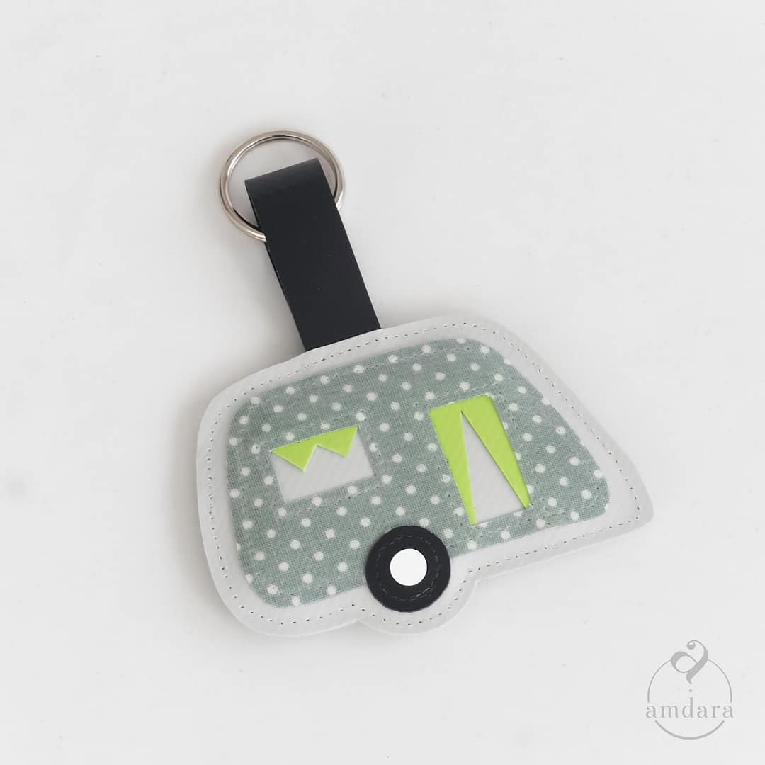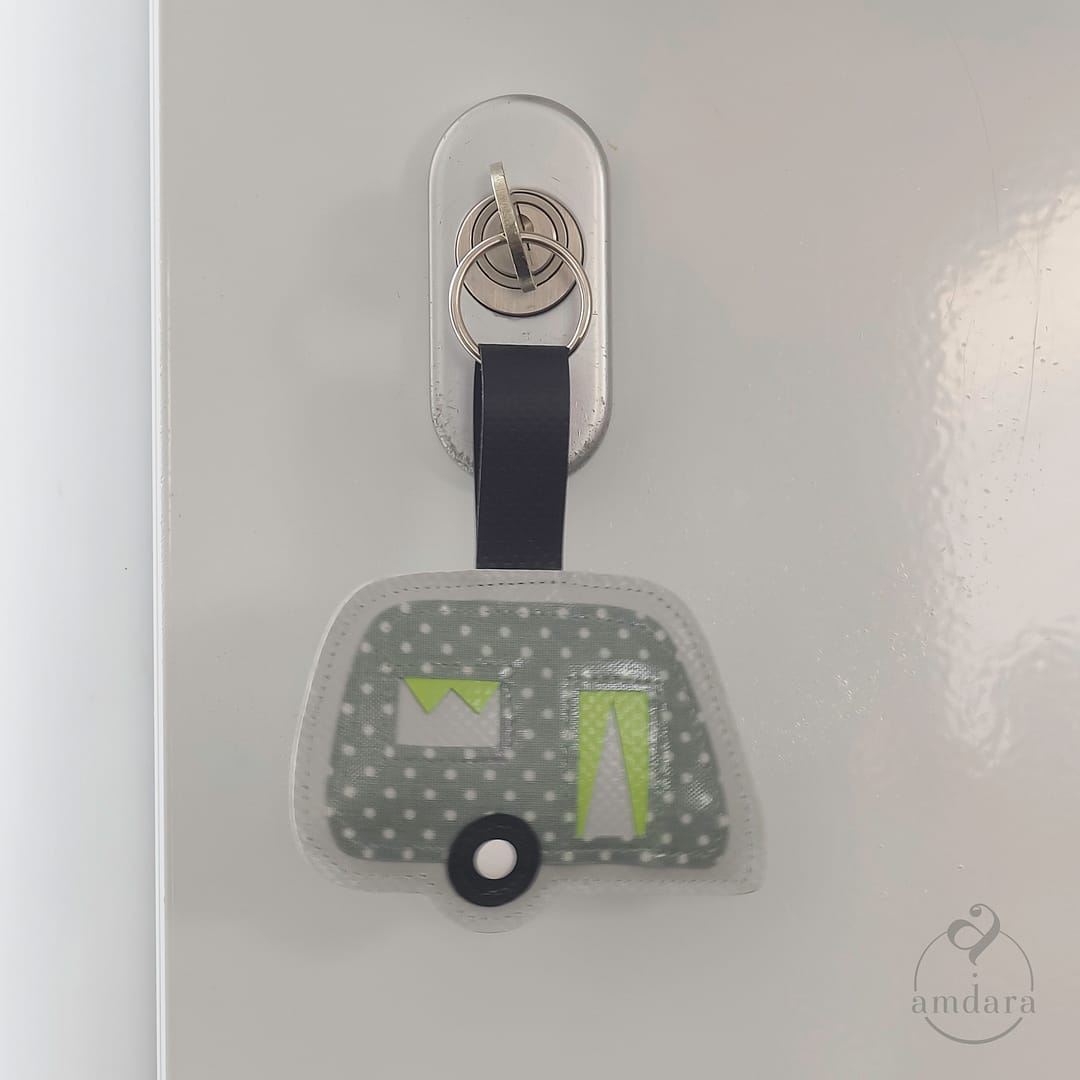 Der Anhänger Camperaus robuster, wasserfesten Blache ist ein Hingucker an Schulthek, Kindergartentasche, Rucksack oder Schlüsselbund.