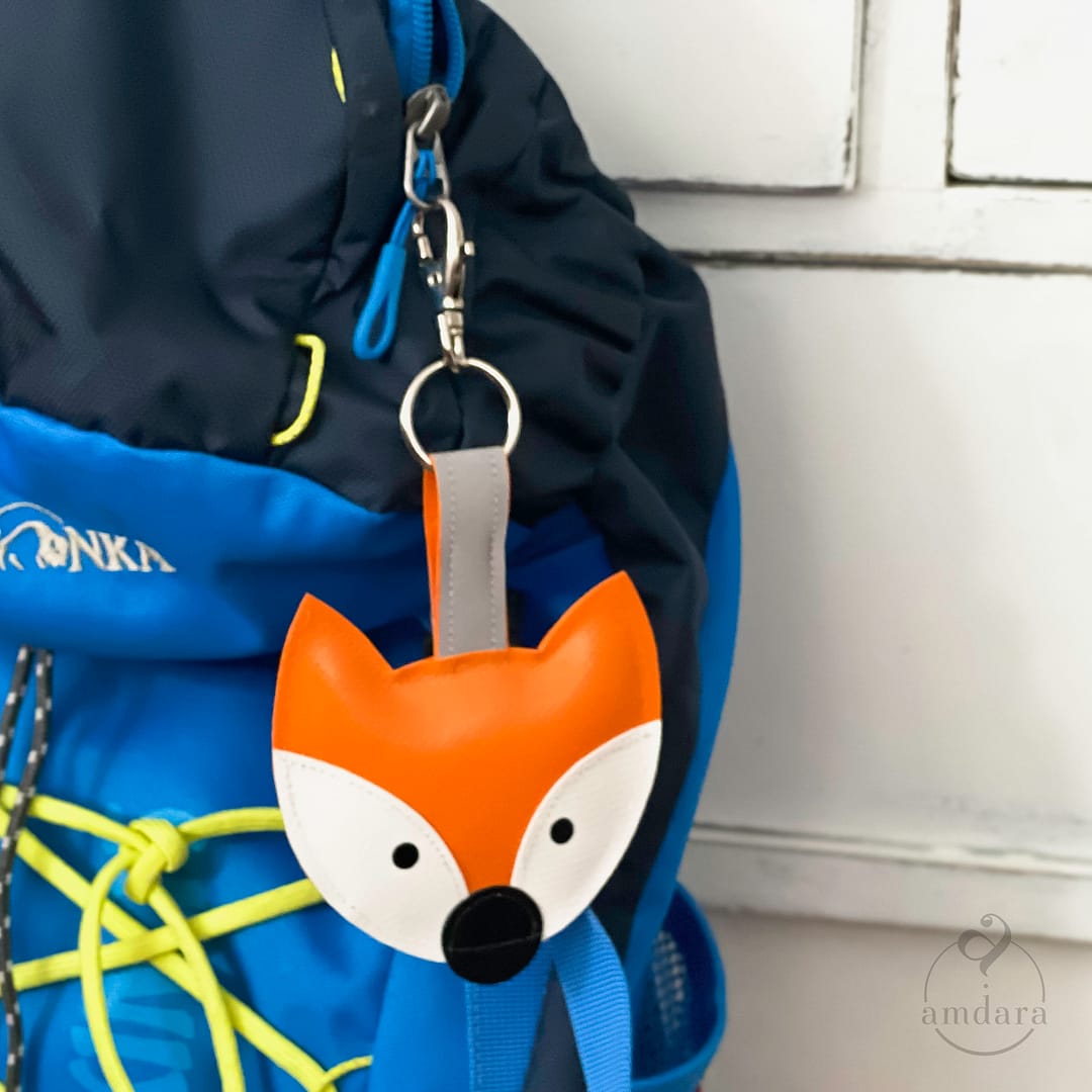 Der Anhänger Fuchs aus robuster, wasserfesten Blache ist ein Hingucker an Schulthek, Kindergartentasche, Rucksack oder Schlüsselbund.