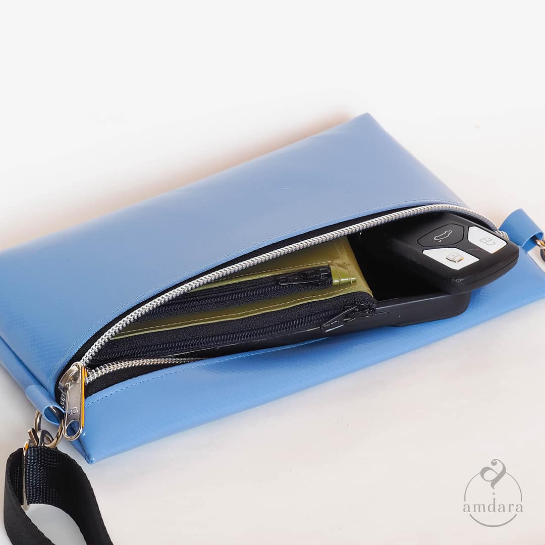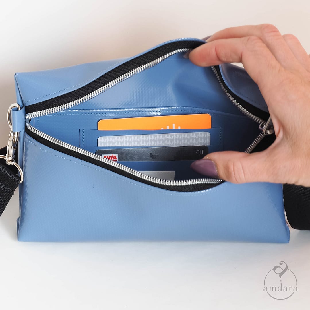 Saira ist auch eine tolle Ergänzung für Rucksackträgerinnen. Mir ihr hast du Smartphone, Bargeld und Schlüssel immer im Blick und rasch zur Hand, wenn du es brauchst.