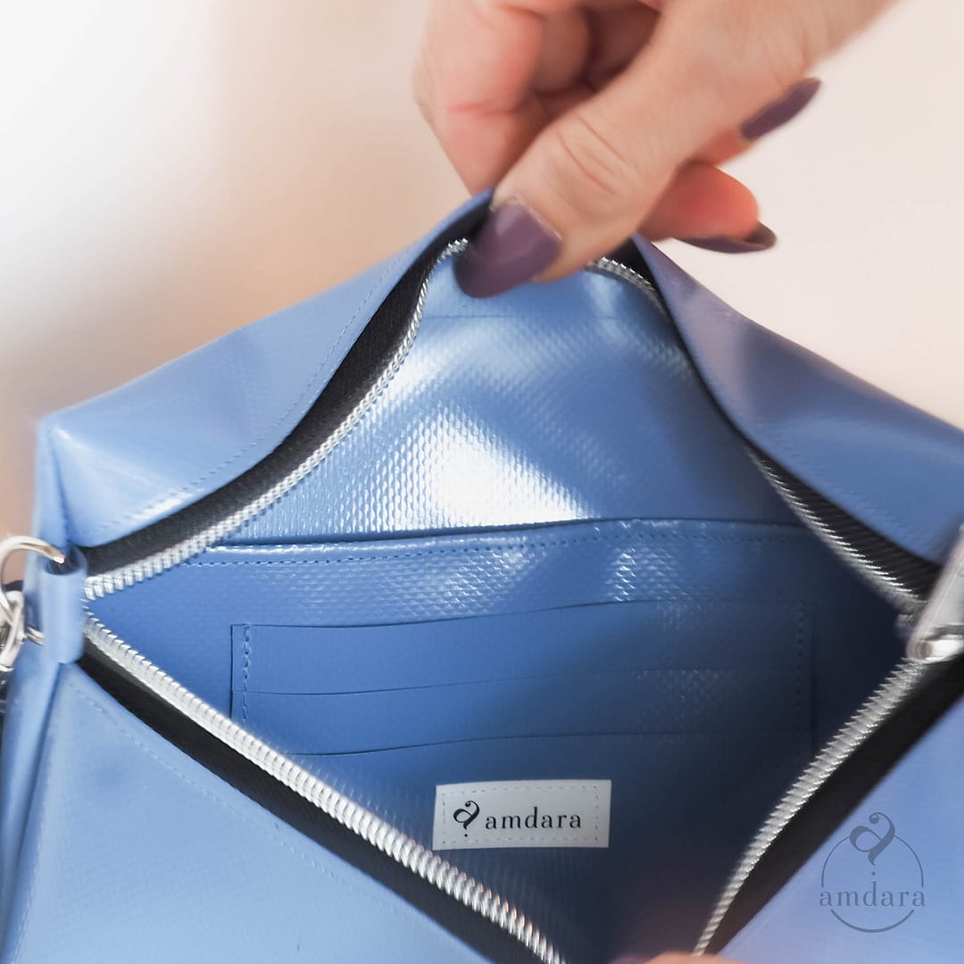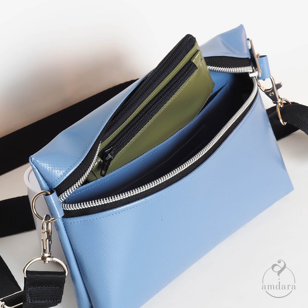 Dir ist Saira zu klein? Dann ist vielleicht die Crossbodybag Ronja etwas für dich. Es gibt sie in zwei Grössen und sie bietet einiges mehr an Stauraum sowie ein Innenfach mit Reissverschluss.