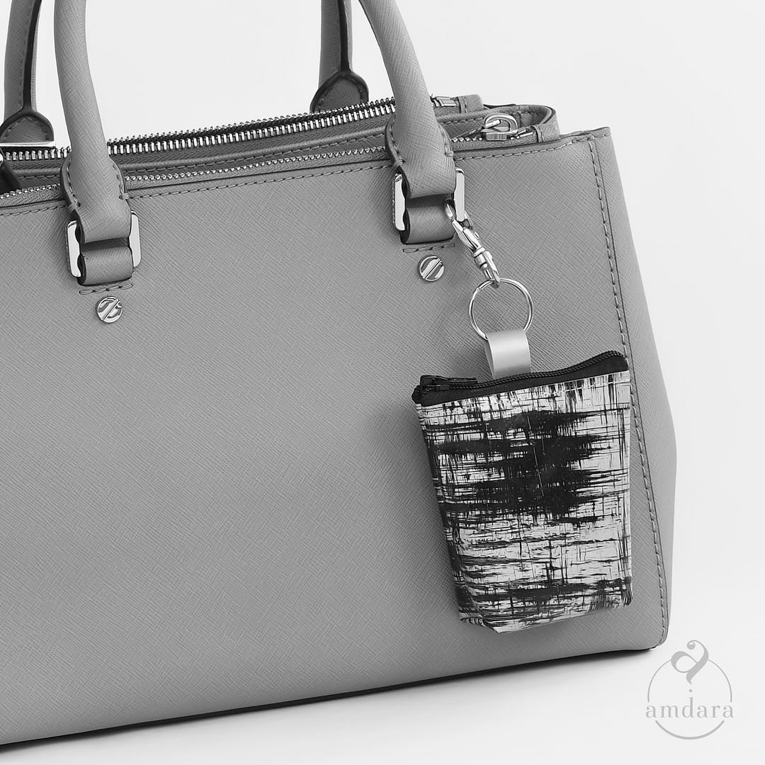Der Karabiner ist auch praktisch am Schlüsselbund. Damit kann der Schlüsselbund einfach an den Portmonees Nisha, Tamana und Amita angebracht werden.