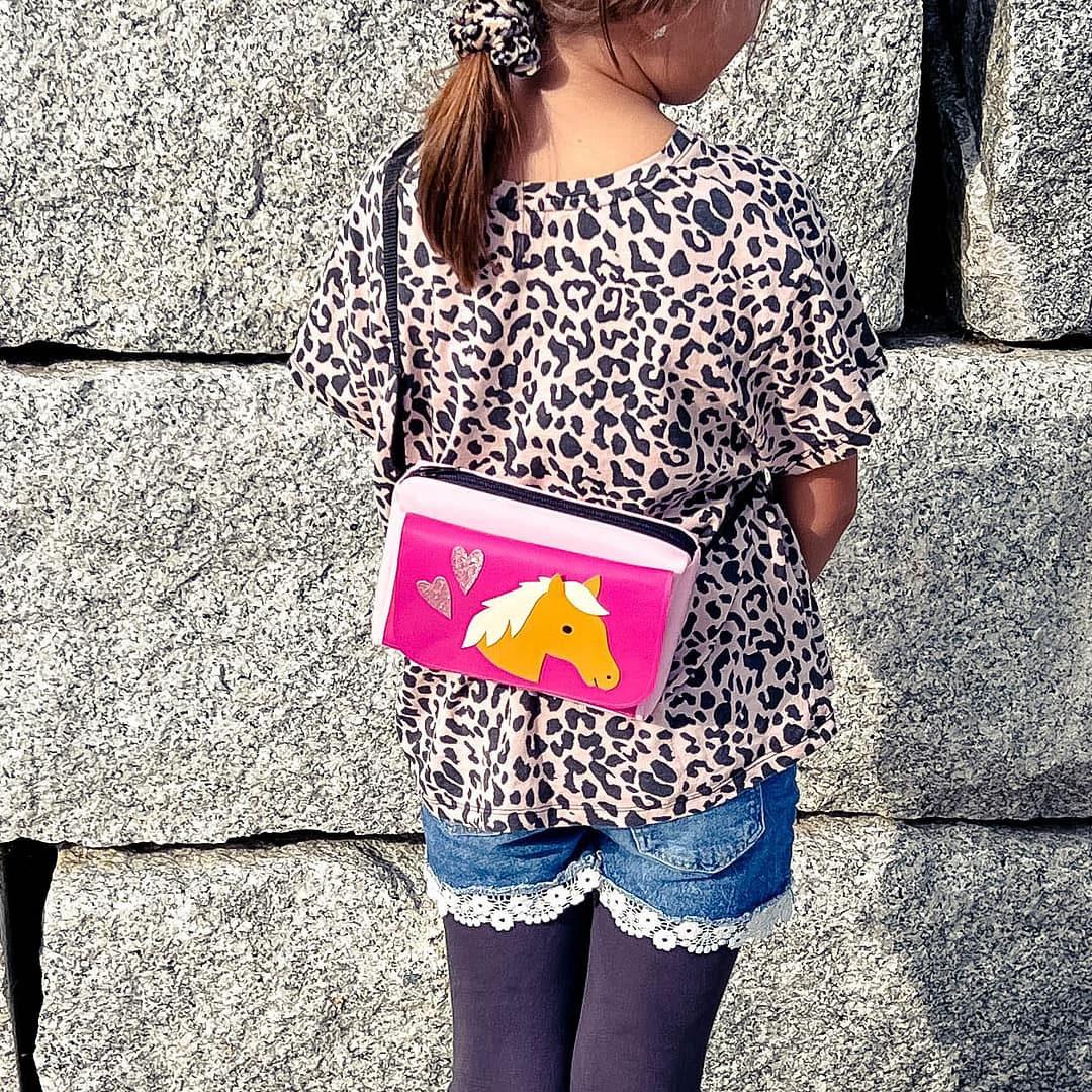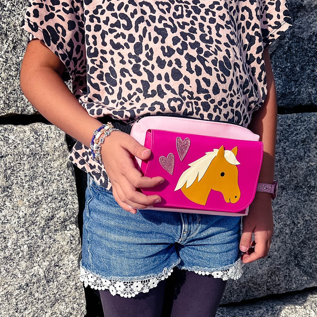 Kinderbauchtasche – Pferd mit Herzen auf pink