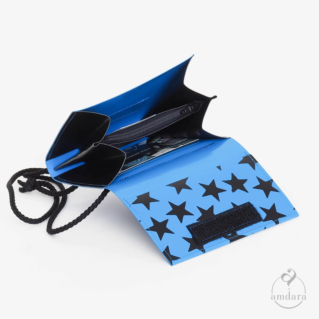 Das Kinderportmonee von amdara ist aus robuster Blache, hält Wind und Wetter Stand und kann bei Bedarf gut gereinigt werden.