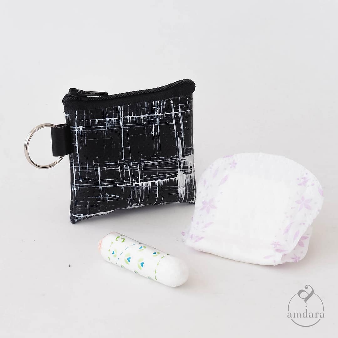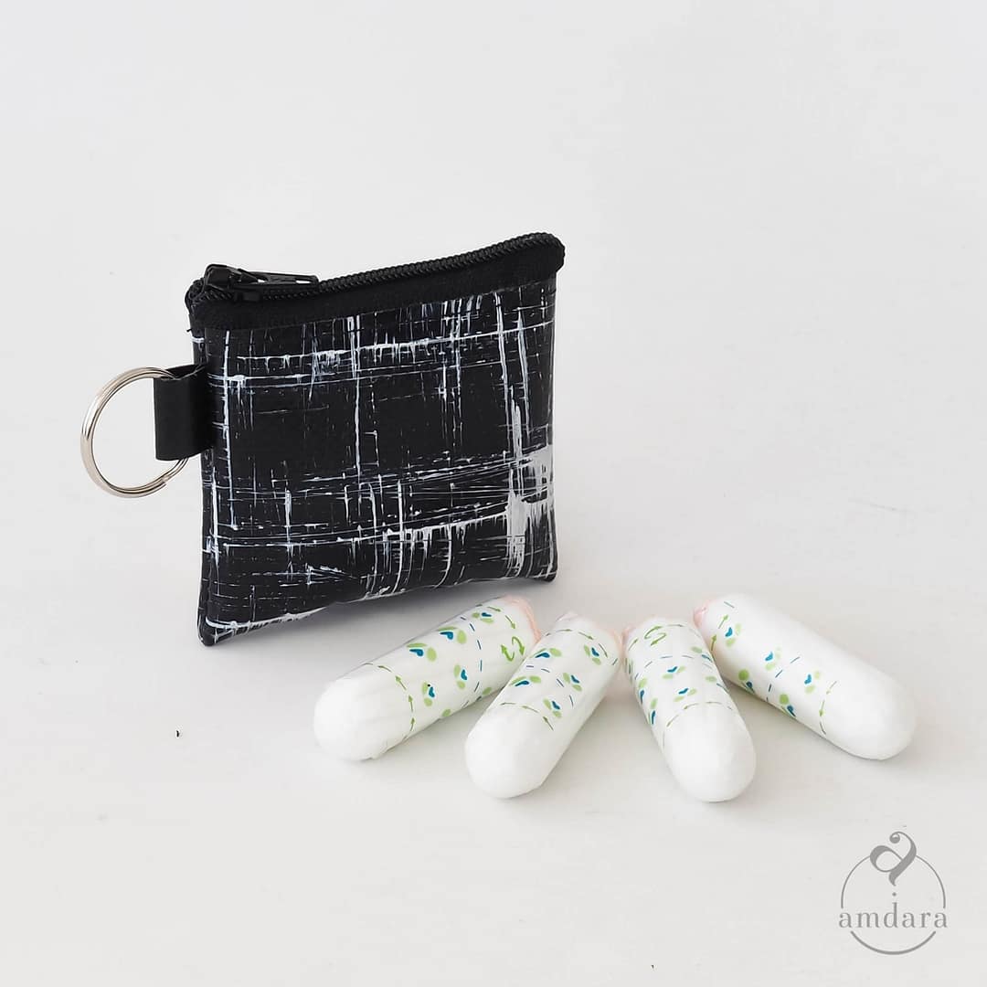 Für Tampons: Je nach Grösse der Tampons haben 3-5 Stück darin Platz. Es gibt auch Mini-Slipeinlagen in der passenden Grösse. So sind Hygieneartikel diskret und handlich versorgt und geschützt.
