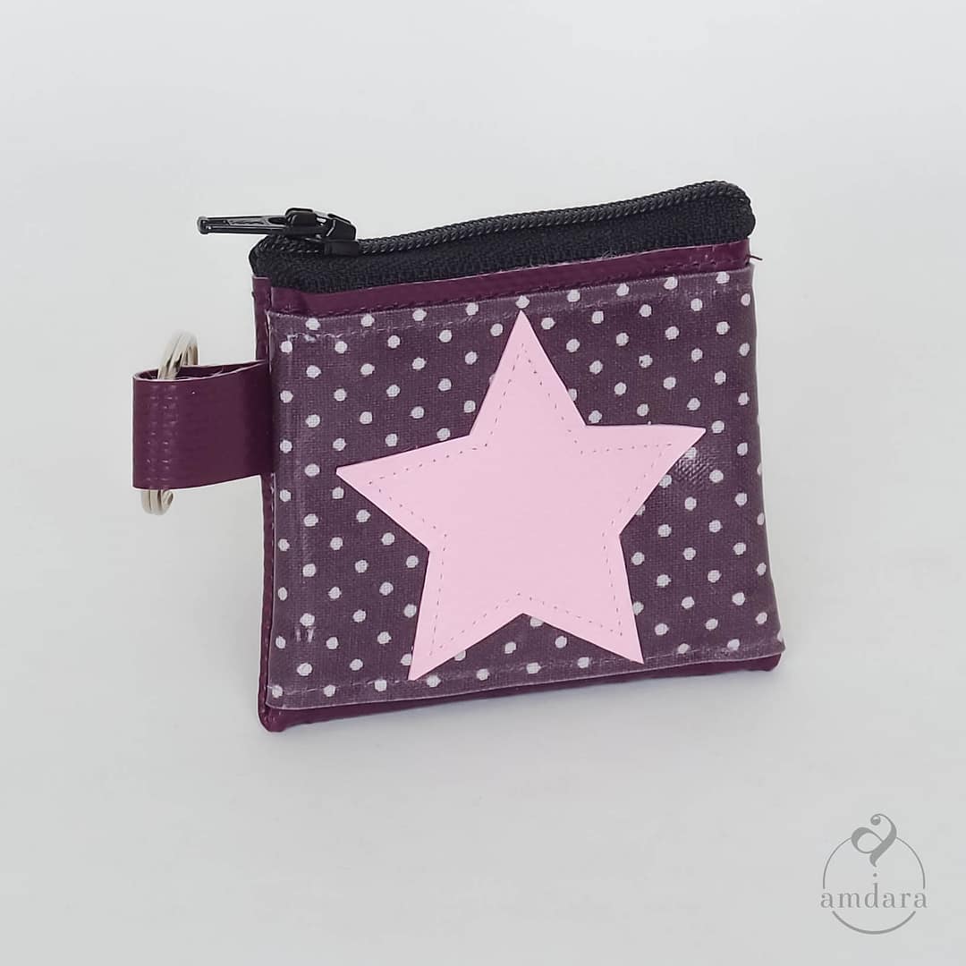 Kopfhörer Täschchen – Pünktchen aubergine mit rosa Stern