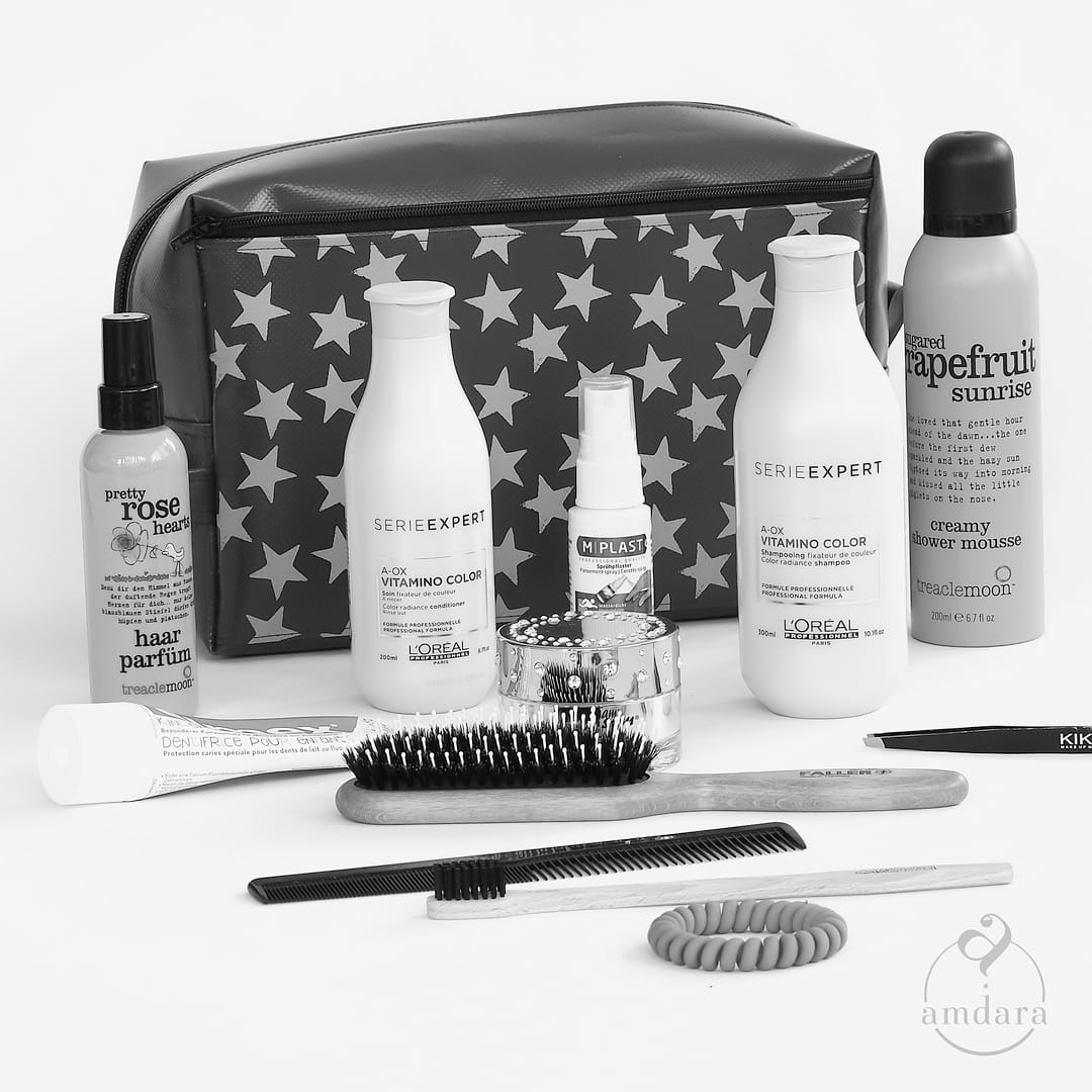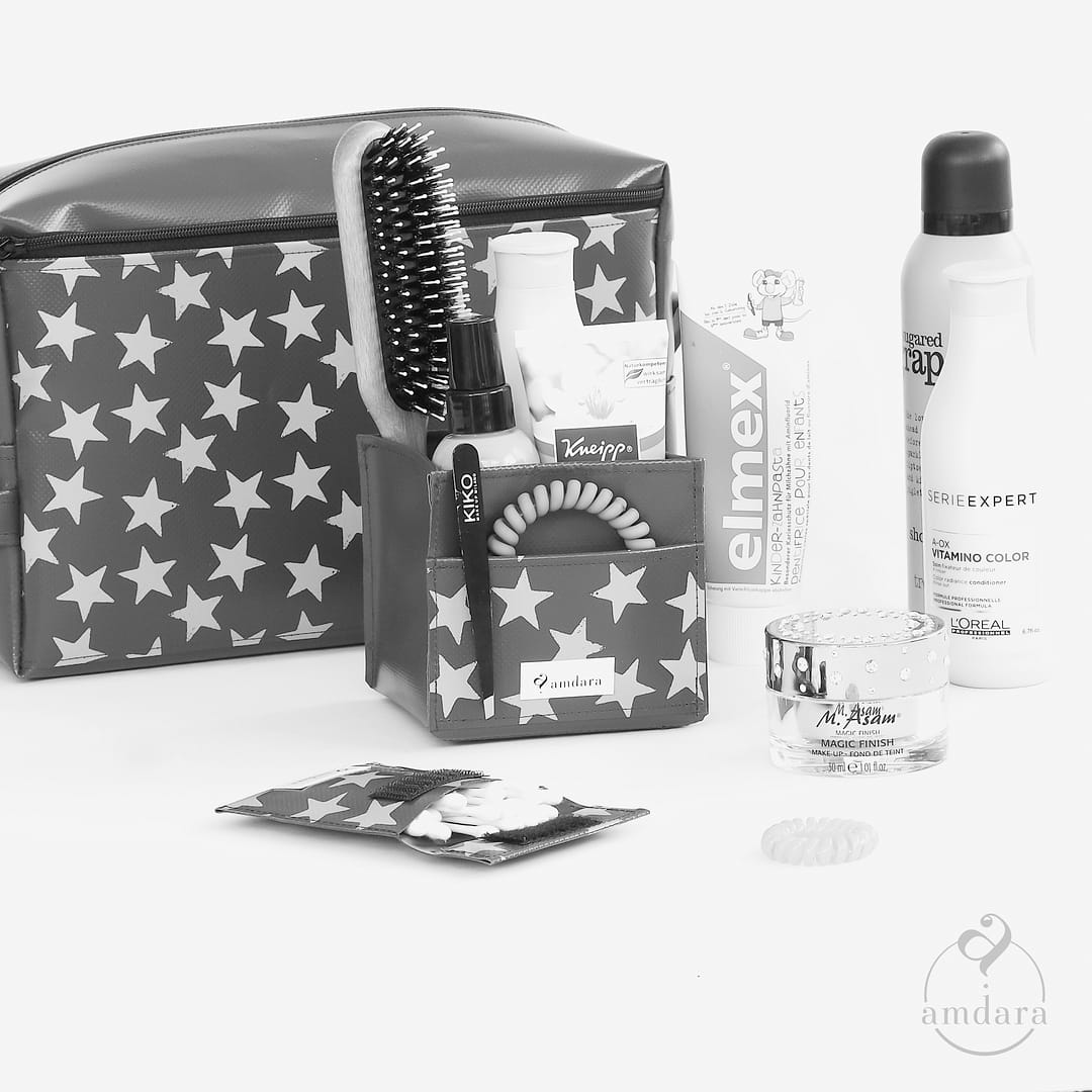 Falls du es gerne ordentlich hast, ist das Necessaire-Set vielleicht etwas für dich. Dieses besteht aus einem kleinen Cube / Utensilio für Fläschchen, Deo und Schminksachen und einem Wattenstäbchen Täschchen.