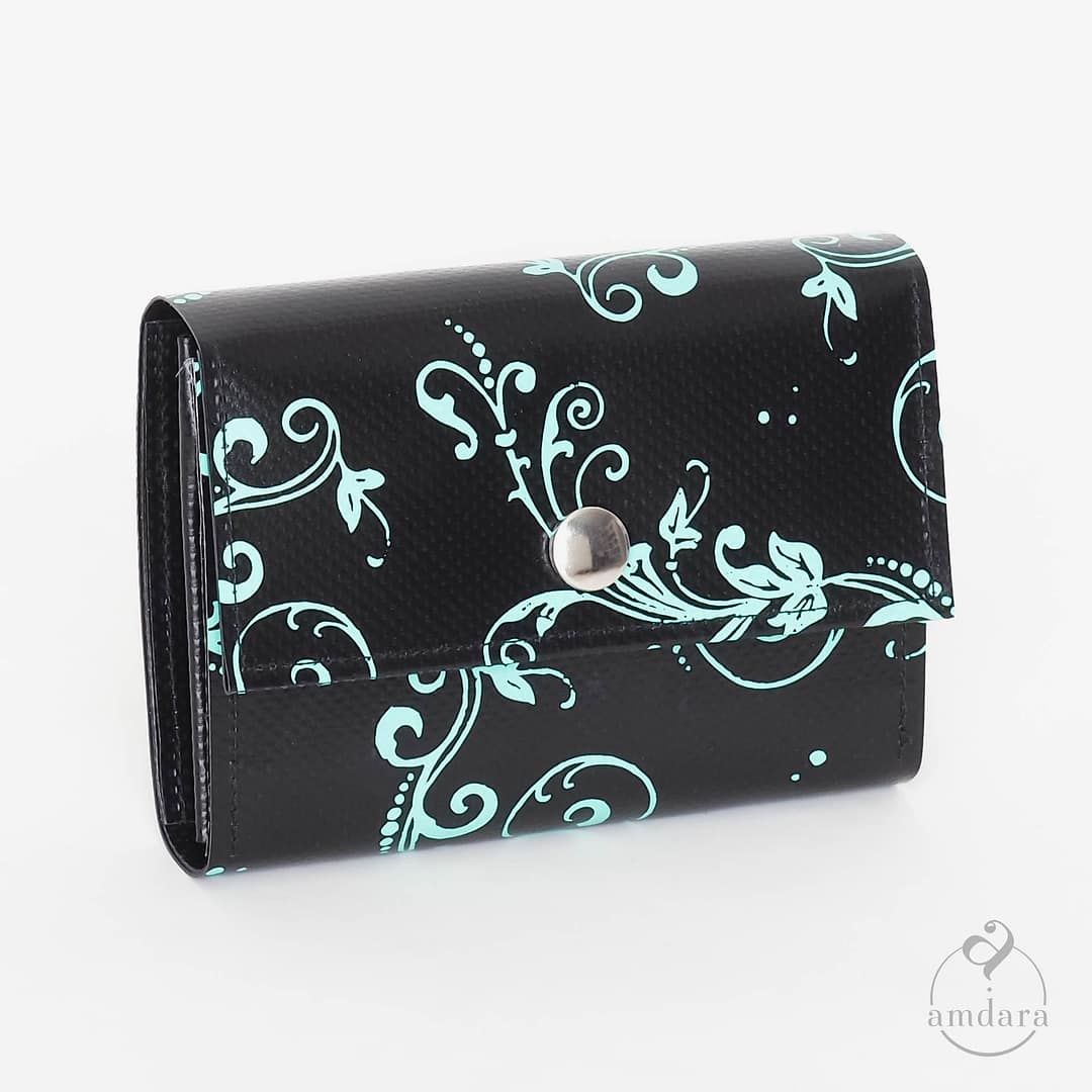 Portmonee Amira – Ornament Print mint auf schwarz