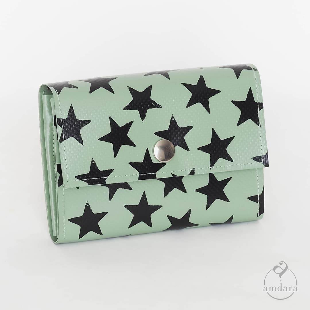Portmonee Amira – Sternen Print schwarz auf graugrün