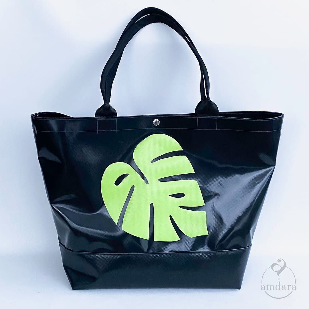 Der Shopper von amdara ist aus robuster Blache und ist sehr stabil verarbeitet, so dass er auch starken Belastungen stand hält. Die Tasche hat auch einen verstärkten Boden. Das Volumen des Shoppers entspricht in etwa dem einer klassischen Einkaufstasche (Papiertüte von Migros oder Coop).