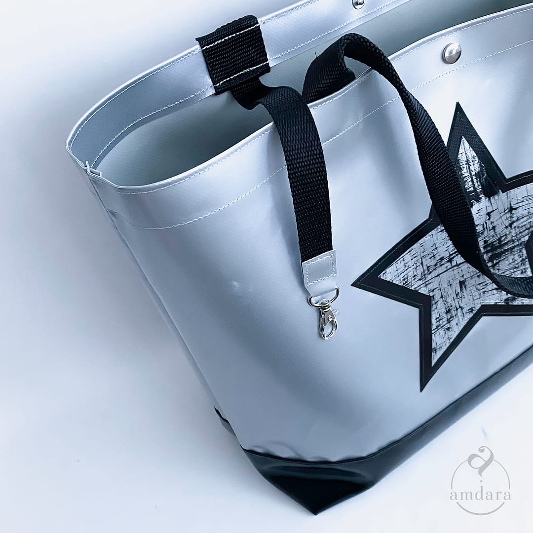 Der Shopper Mini von amdara ist aus robuster Blache und ist sehr stabil verarbeitet, so dass er auch starken Belastungen stand hält. Die Tasche hat auch einen verstärkten Boden, wodurch sie einen guten Stand hat und trotzt Inhalt nicht durchhängt.
