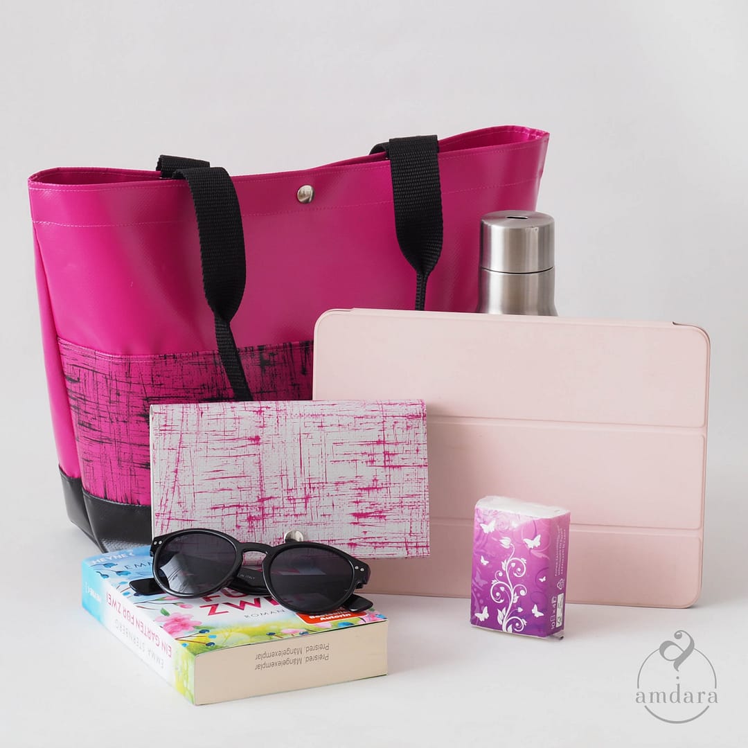 Handtasche: Du willst das iPad, eine Trinkflasche oder auch mal eine dünne Jacke mit dabei haben? Dann eignet sich dieser Shopper auch als Handtasche, welche über den Schultern getragen wird.