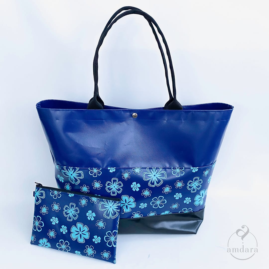 Der robuste Shopper aus Blache kommt als Einkaufstasche, grosse Handtasche, Sporttasche oder Badetasche zum Einsatz.